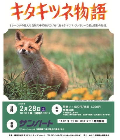 ひばりさんがご覧になった『キタキツネ物語』をスクリーンで観られるチャンス。ご都合のつく方は是非!