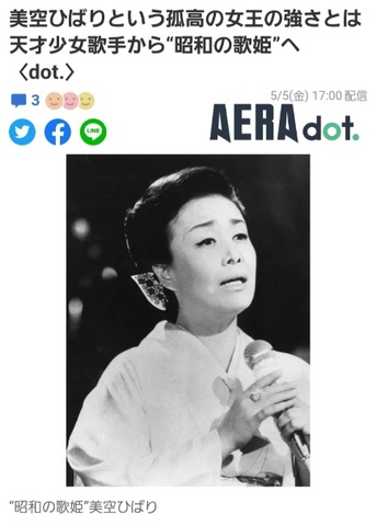 美空ひばりという孤高の女王の強さとは 天才少女歌手から“昭和の歌姫”へ https://news.yahoo.co.jp/articles/45a160cc71ebf5d0d28411fed2ba67b9407f9d80?source=rss